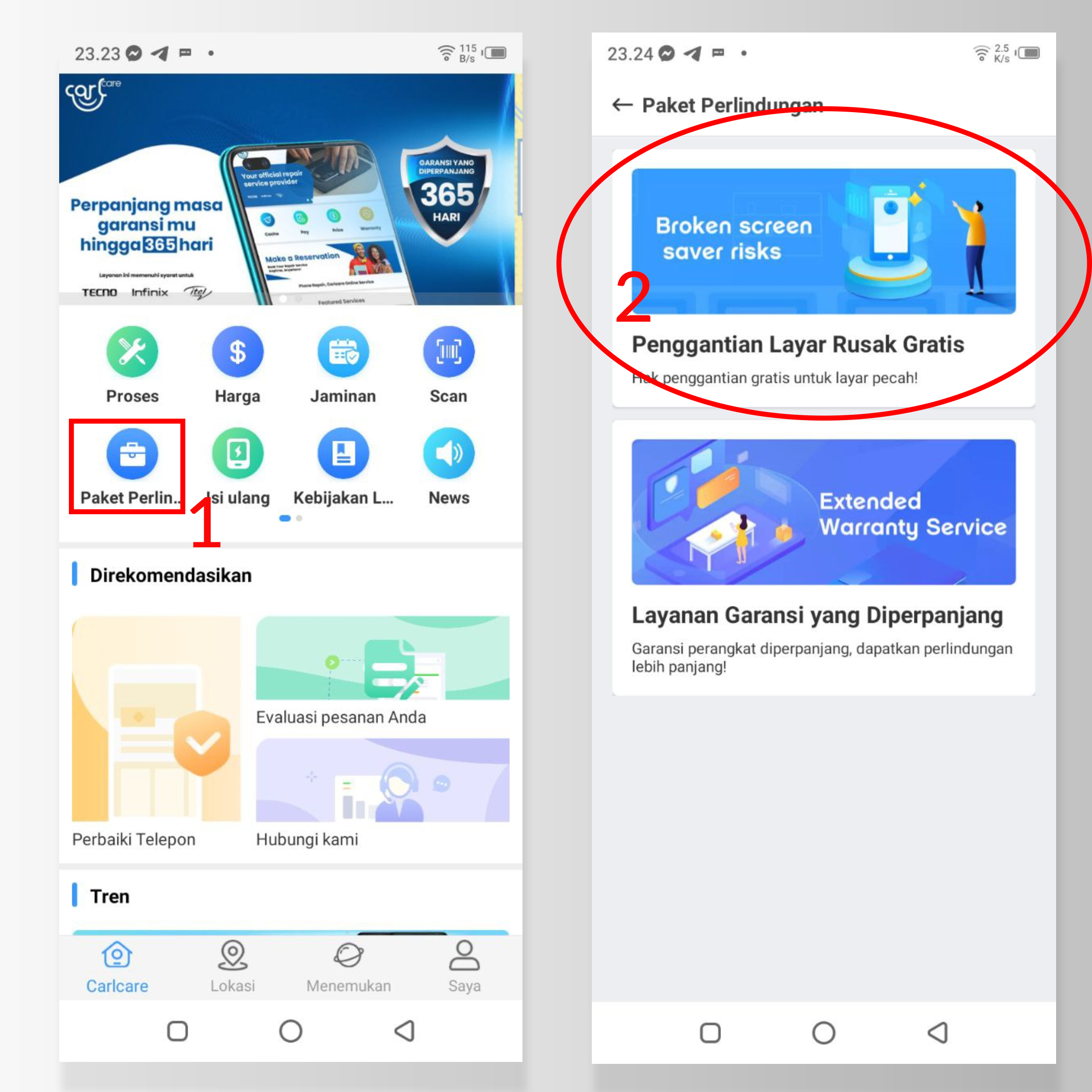 >> Buka aplikasi CARLCARE dan pilih menu PAKET PERLINDUNGAN